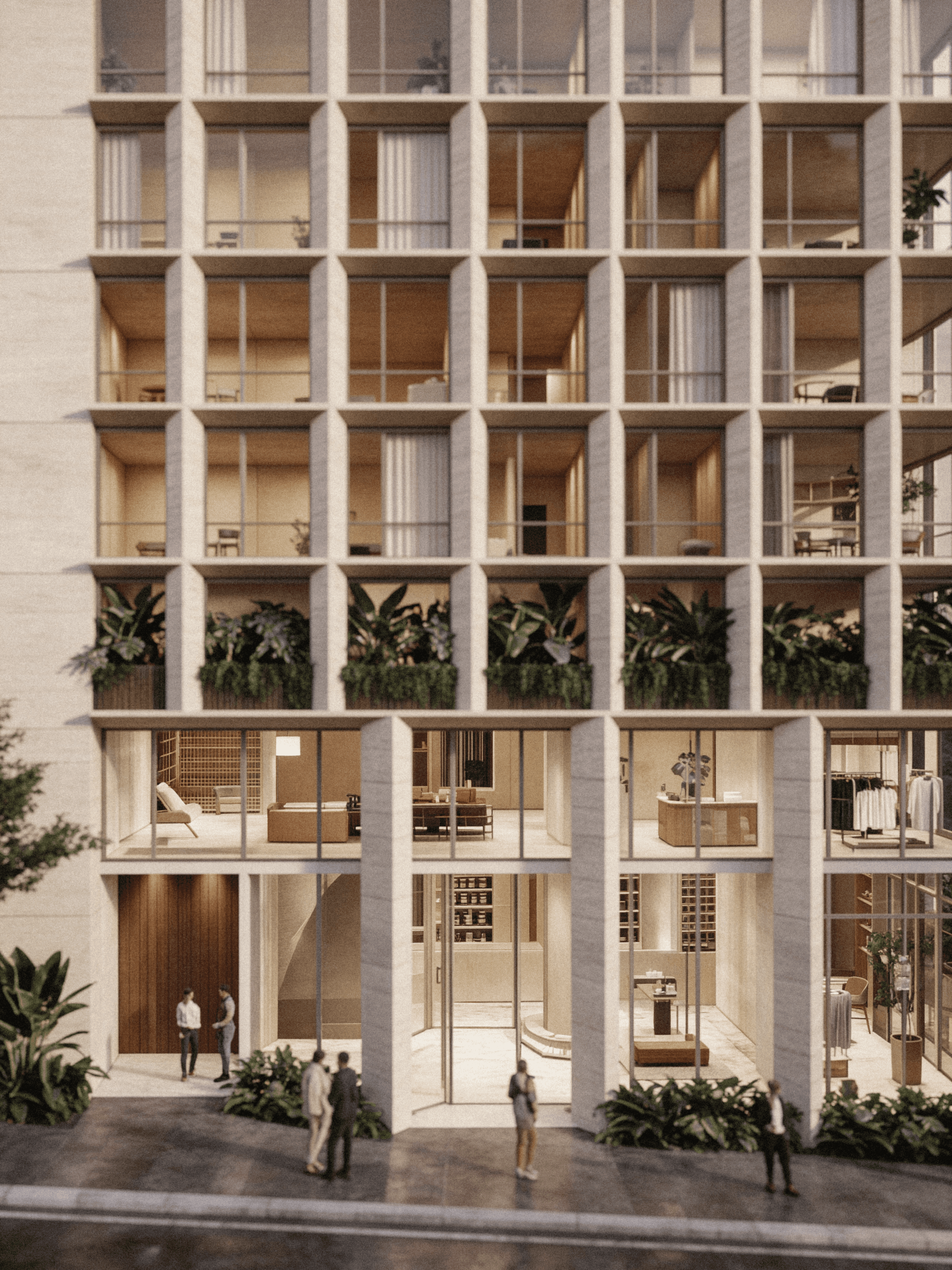 Awarded first place in a private design competition, Melo Alves is a mixed-use development located on one of the most iconic streets in Jardins, São Paulo. Designed for a narrow urban parcel, the project explores verticality, repetition, and restraint—balancing public presence with residential privacy. Interface Craft was engaged during early design development to help define the building’s architectural language, material logic, and façade articulation.